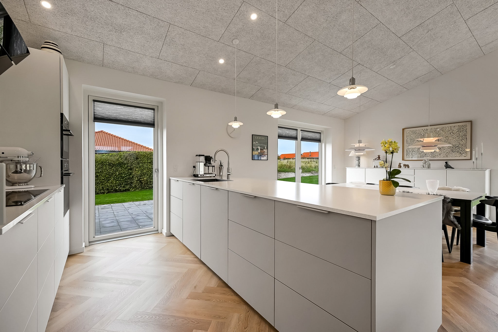 Området omkring boligerne byder på grønne, rekreative arealer, hvor hunden kan luftes og løbeturen klares. Derudover er der legeplads, hvor de mindste i familien kan få masser af tid til at flyve afsted, og stisystem, der forbinder jer til hverdagens fornødenheder